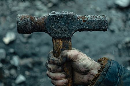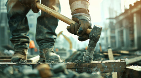Construction Worker with Hammer on Active Site - Building, Labor, Industry Theme