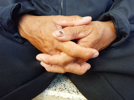 closeup asian hands clasped together