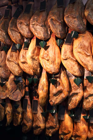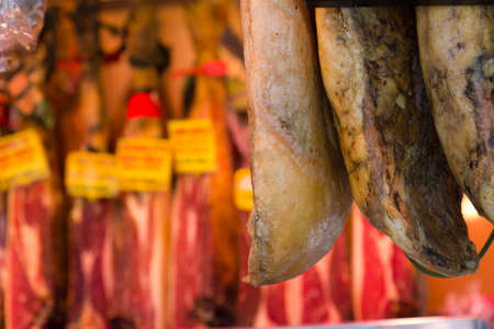 Spanish Jamon Serrano ham for sale, Barcelona, Catalonia, Spain