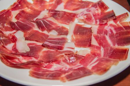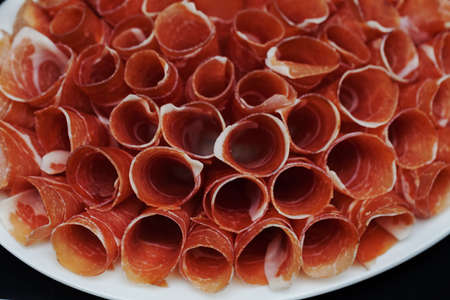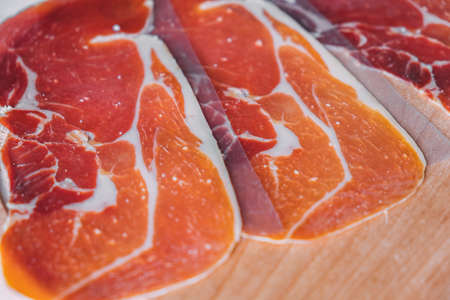 Spanish jamon, dry-cured ham thin slicing for background