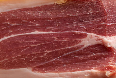 texture of a pork slice of prosciutto, full frame, close up
