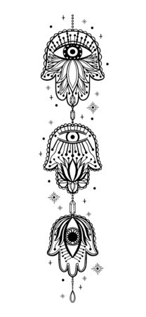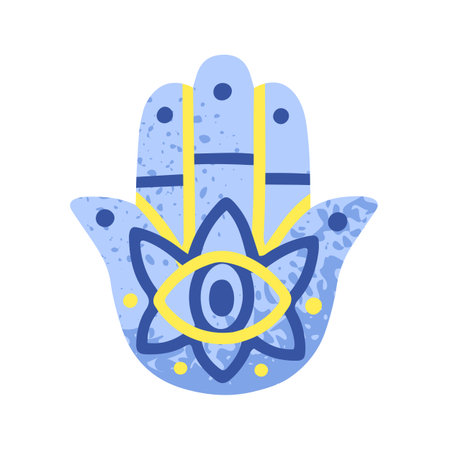 Hamsa hand with eye symbol. Sacred Jewish amulet, lucky talisman, charm. Khamsa, Miriam and Fatima palm for luck and protection against evil. Flat vector illustration isolated on white background