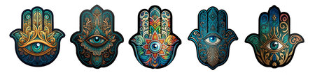 Set of watercolor hamsa hand symbol isolated on white. Generative AI, edited in Photoshop. Perfect stickers set