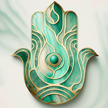 Turquoise malachite marble ornamental Hamsa hand pattern. Hand of Fatima - amulet, symbol of protection from devil's eye. Marbled jewelry textured hamsa hand. vector illustration. luxury surface texture