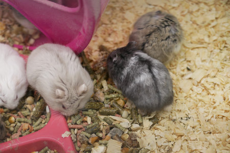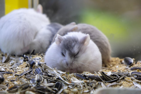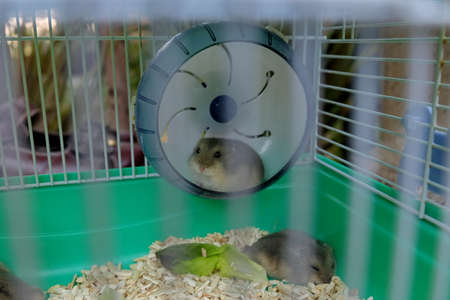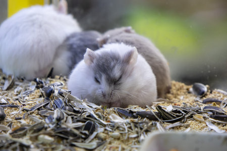 a family of Jungar hamsters. selling and breeding domestic rodents. pet shop