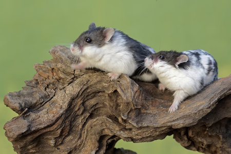 Hamsters on a tree branch in the wild. Wildlife scene from nature.