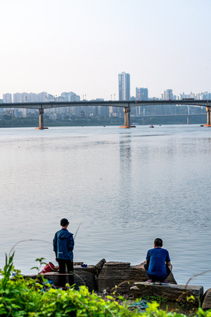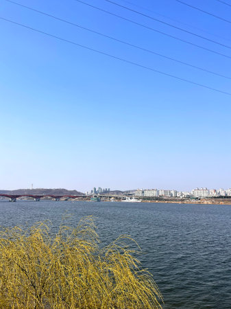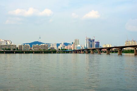 SEOUL, SOUTH KOREA - CIRCA JUNE, 2017: view of Han River in Seoul. The Han River or Hangang is a major river in South Korea.