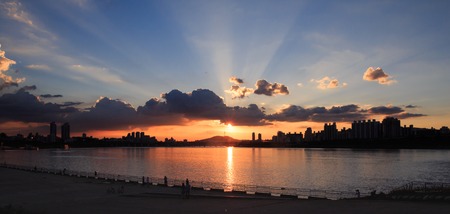 beautiful sunst with dramatic sky on Han river in Seoul, Korea