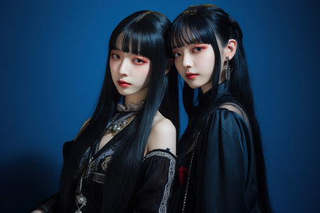 Portrait of two gothic women in black kimono