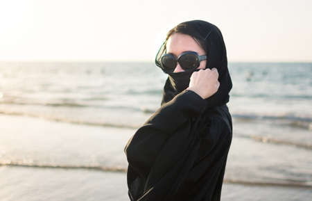 Portrait of a woman wearing abaya on the beach