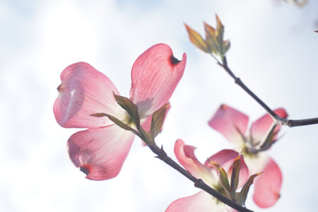 Delicate Pink Dogwood Flowers Blooming in the Spring Garden