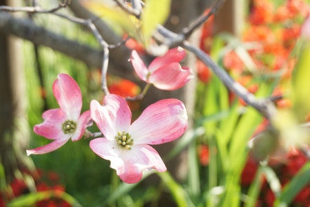 flowering dogwood, pink colored flower in garden
