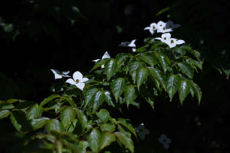 Cornus kousa (Japanese flowering dogwood) flowers. Cornaceae deciduous tree. The flowering season is from May to July.