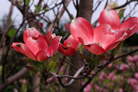 Pink Dogwood flowers (Cornus florida rubra) in spring bloom, Nara, Japan