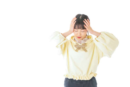Young woman suffering from headache shot in the studio on a white background