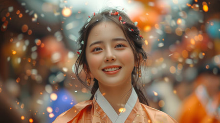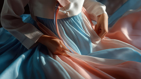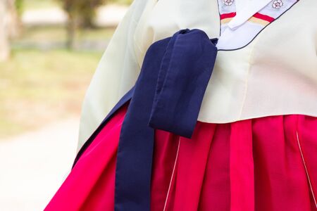 Close-up of woman wearing Hanbok, Korean traditional dress