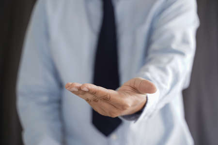 Man showing empty hand. Giving gesture