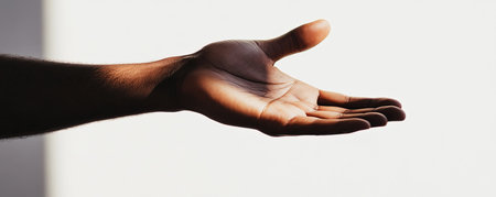 Open hand gesture on white background, reaching out concept