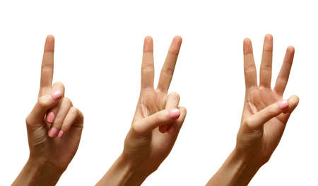 finger hand symbols isolated concept three fingers salute congratulation on white background