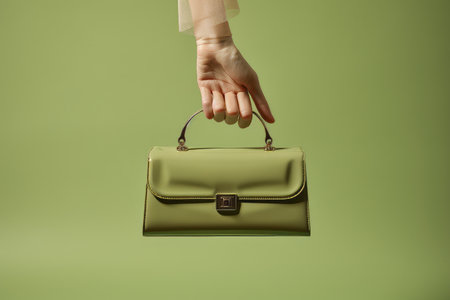 A stylish orange handbag held by a hand, set against a smooth backdrop. This minimalist image captures the essence of modern fashion and chic design.