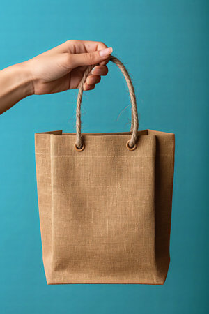 Woman hand holding sackcloth bag with copy space No plastic bag concept