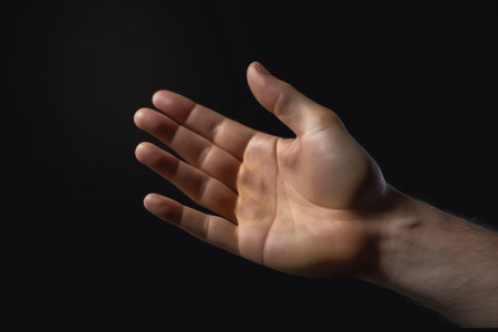 Detailed shot of a human hand reaching out, focusing on the texture of the skin and fingerprints