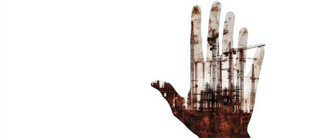 Double Exposure of Industrial Factory Outlined in a Hand, Ecology and Pollution Concept