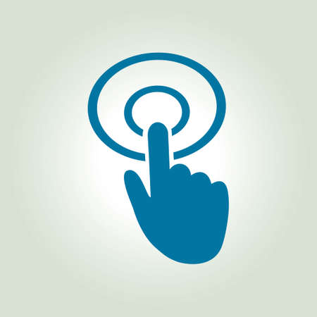 Finger pointer clicks on button or mouse cursor choosing linear icon symbol