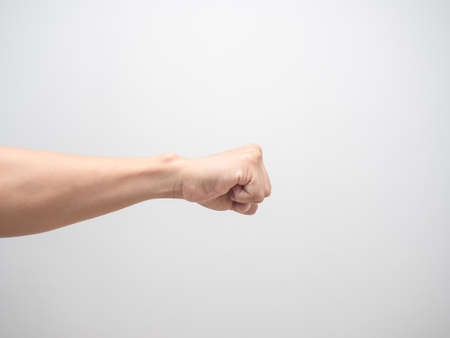 Top up view man fist on white background. added copy space for text.