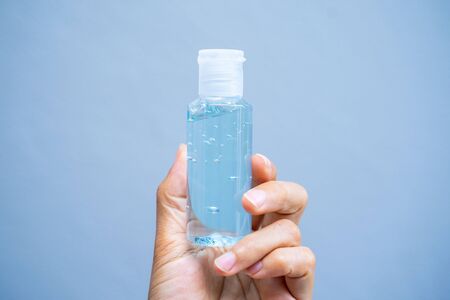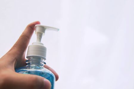 Human hand plastic bottle using alcohol gel to do the cleaning. Concept of pandemic pandemic transmission or coronavirus. copy space