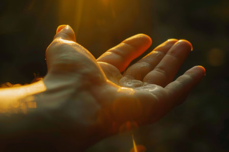 Close-up of an open hand illuminated by warm sunlight, symbolizing connection, hope, and the beauty of nature.