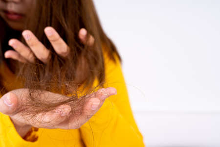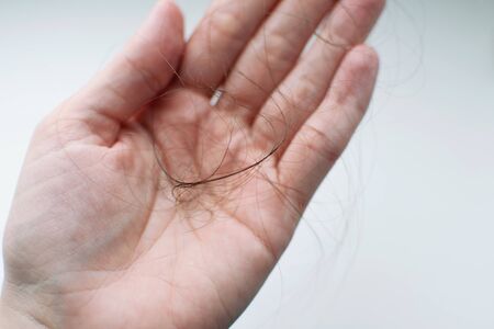 Hair fall problem, closeup hand holding problem hair. Healthcare medical or daily life concept.