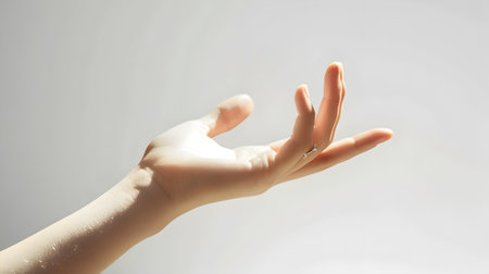 Close-up of a hand with extended fingers, catching the light, isolated white background generative ai