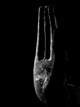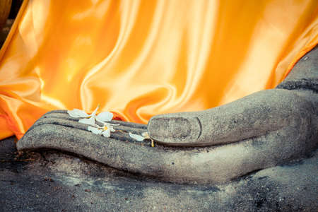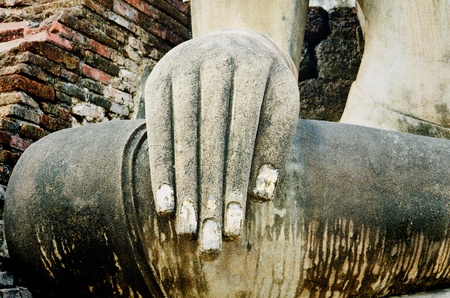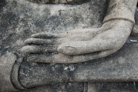 Closeup of hand buddha sculpture in the old temple from Sukhothai, Thailand