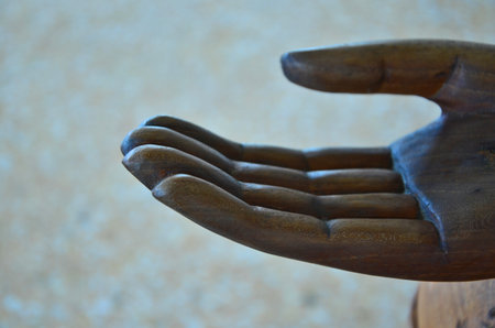 Close up of a beautifully crafted hand sculpture rich in detailed patterns and textures.