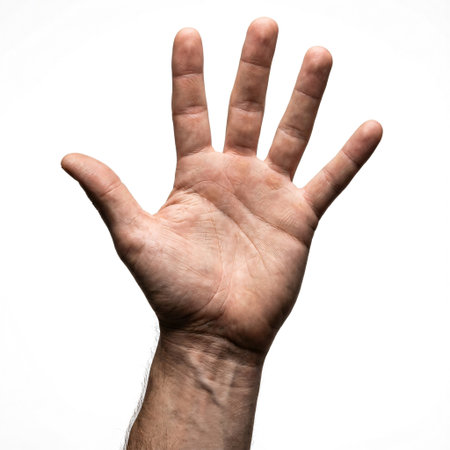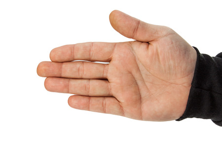 Male left hand with five fingers close up isolated on white background