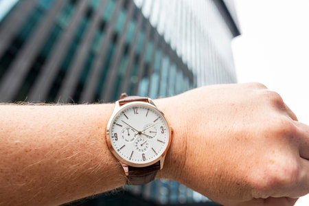 Close up of an expensive wrist watch on the hand of a successful businessman