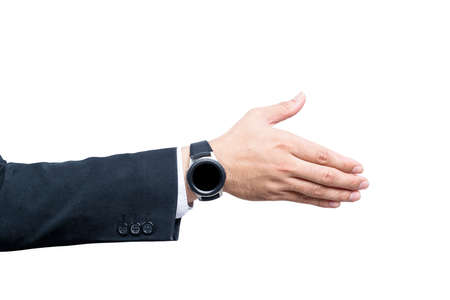 Businessman hand offer shake hands isolated over white background