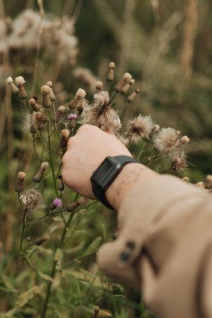 female hand with a clock and natural flowers Wildlife