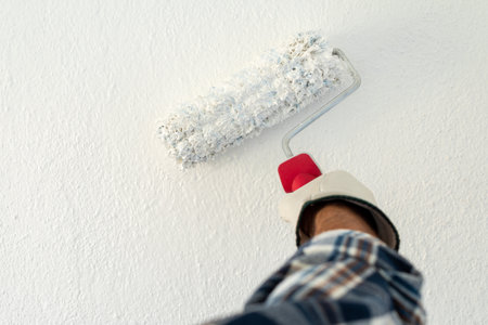 hand painting wall with paint roller