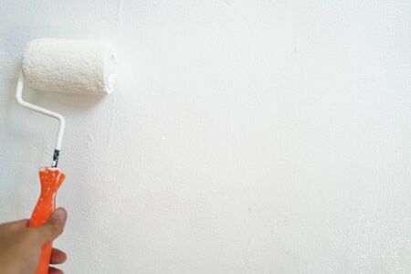 Hand paint white color roller on house wall maintenance, Renovate concept