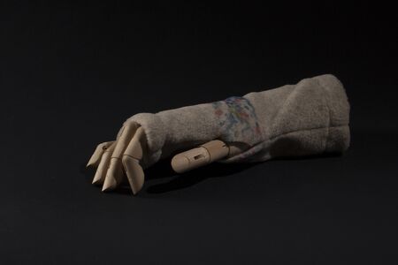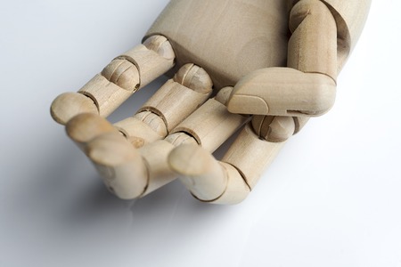 Wooden hand of mannequin on white background