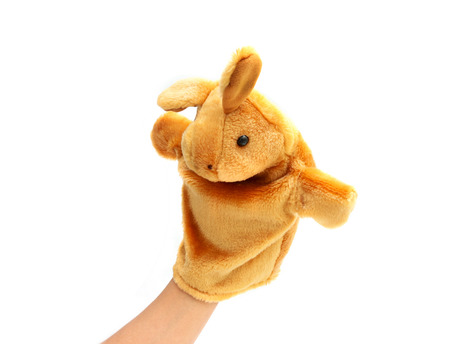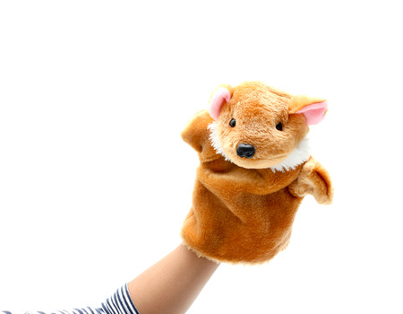 Hand puppet for child on white background.