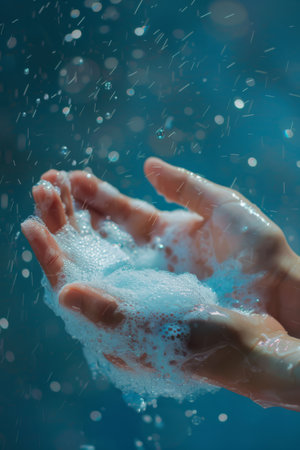 Refreshing Splash Hands Catching Water Drops with Soap Suds.