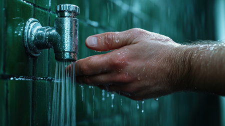 check the temperature of the water man's hand cold and hot water