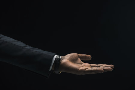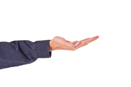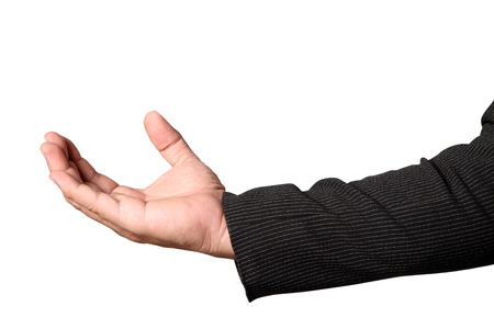 Empty businessman's right hand to showing something isolated on white background with clipping path, concept advertisement product.