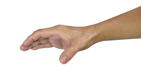 Hand open and ready to help or receive. Gesture isolated on white background with clipping path. Helping hand outstretched for salvation.
