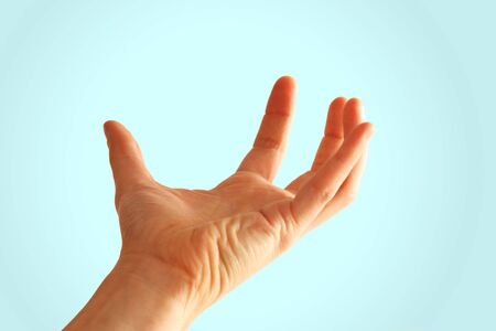 Open hand gesture on white background, reaching out concept