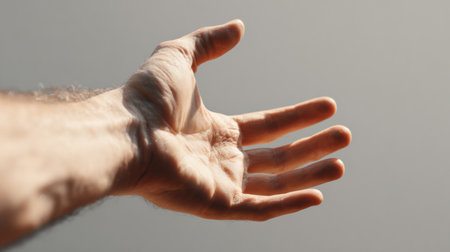 An outstretched hand is extended towards an empty background, symbolizing an offer of assistance, support, and connection in a silent gesture.