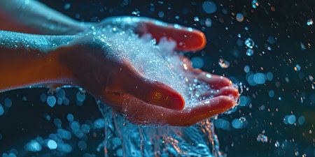 Hands cupping water with bubbles a symbol of cleanliness and refreshment.